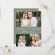 Announce your wedding date with this stylish, modern photo save the date card. The design features three of your favourite engagement photos with "Save the Date" in white serif and script fonts with a sage green background (or colour of your choice). Personalise the minimalist save the date announcements by adding your names, date and wedding location. The card reverses to a solid sage green background. The simple save the date announcement is perfect for any wedding theme.