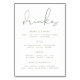 Modern Elegant Sage Green Neutral White Wedding Drinks Menu - modern and impressive - part of a collection