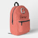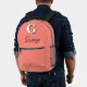 A personalised monogram backpack designed in a modern elegant style. This elegant Salmon  backpack features a bold white initial 'G' with a black shadow and a customisable name in black script font. Perfect for adding a touch of sophistication and personalisation to your everyday style. Ideal for school, work, or casual outings, this backpack combines functionality with a chic design that stands out.
