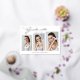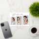 This real foil, modern and elegant 3 photo graduation announcement card, features design elements of modern text fused with elegant calligraphy script. The graduates photos are displayed on the front of the card while the back of the card offers personalised text spaces for information about the graduation and future journey. Backgrounds are white on the front and silver grey on the back or easily customise these to colours of your choice. To see more items like this, visit my store here at "www.Zazzle.com/LakeViewCardCo". Thanks