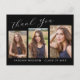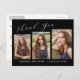 This modern elegant 3 photo graduation "Thank You" postcard, features design elements of modern text fused with elegant calligraphy script. Your grad photos are displayed on the front of the card while the back of the card offers personalised text space for a thank you message or can be left blank if you wish to handwrite your message. Backgrounds are regal black and white or easily customise these to colours of your choice.
