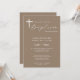 Modern Elegant Script Beige Baptism Invitation. Personalise with baby's name, date of baptism, church location, family residence address and RSVP response.