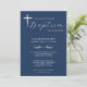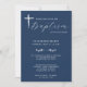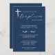 Modern Elegant Script Blue Baptism Invitation. Personalise with baby's name, date of baptism, church location, family residence address and RSVP response.