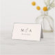 Modern wedding place cards featuring black calligraphy script on a cream background. The back of the cream place cards feature your monogram initials with your wedding date shown below. The elegant script place cards are perfect for modern wedding receptions, rehearsal dinners, and other special events.