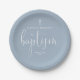 Modern Elegant Script Dusty Blue Baptism Paper Plate
