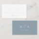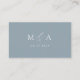 Modern wedding place cards featuring dusty blue calligraphy script on a white background. The back of the dusty blue place cards feature your monogram initials with your wedding date shown below. The elegant script place cards are perfect for modern wedding receptions, rehearsal dinners, and other special events.