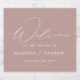 The modern wedding sparkling wine labels featuring "Welcome" displayed in an elegant white calligraphy script on a dusty rose background. Personalise the dusty rose wedding sparkling wine labels with your names and wedding date. The simple wedding sparkling wine labels are perfect to use for wedding receptions, rehearsal dinners, and engagement parties.