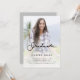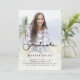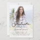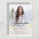 Modern graduation photo invitation card featuring a calligraphy graduate script on a white gradient background that will make the text pop. Suitable for the high school or college graduate. Can be used as a graduation thank you card or grad party invitation.