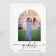 Modern Elegant Script Graduation Arch Photo Announcement featuring elegant handwritten script along with a full sized photo on the front and a square photo on the back. All text and colours are fully customisable - perfect for your simple elegant graduation announcements. Please contact us at cedarandstring@gmail.com if you need assistance with the design or matching products.