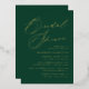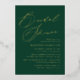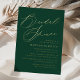 Simple bridal shower invitations featuring "Bridal Shower" displayed in a gold foil calligraphy script with a green background. Personalise the green and gold foil bridal shower invitations with the bride-to-be's name and shower details below. The modern bridal shower invite reverses to display a solid green background.