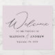 The modern wedding sparkling wine labels featuring "Welcome" displayed in an elegant black calligraphy script on a lavender-purple background. Personalise the lavender wedding sparkling wine labels with your names and wedding date. The simple wedding sparkling wine labels are perfect to use for wedding receptions, rehearsal dinners, and engagement parties.