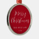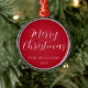 Modern Elegant Script Merry Christmas Red Metal Ornament