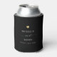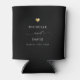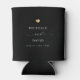 Modern wedding party favour can cooler with your custom names in elegant swirly script calligraphy, the couple's names and the date of your celebration. This is the minimalist black and white version with a golden heart detail. Great also for bridal showers, engagement or bachelorette parties.