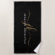 Modern Elegant Script Monogram Initials Black Gold Beach Towel