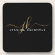 Personalised modern plastic coaster with simple, elegant handwritten calligraphy script initials or monogram and name in gold and white against an editable black background for a stylish or professional look. CHANGES: Change the background colour, choose a styled graphics background or change the text font style, colour, size and placement by clicking on EDIT in the PERSONALIZE section for a custom design. ASSISTANCE: For help with design modification or personalisation, colour change, resizing, transferring the design to another product or if you would like coordinating items, contact the designer BEFORE ORDERING via the Zazzle Chat MESSAGE tab below or email makeitaboutyoustore@gmail.com.