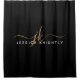 Modern Elegant Script Monogram Initials Black Gold Shower Curtain