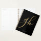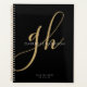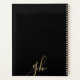 Modern personalised spiral planner with stylish elegant calligraphy script initials or monogram and name in your choice of colours (shown in faux gold and white against an editable black background). CHANGES: The text font style, colour, size, spacing and placement can be changed by clicking on EDIT in the PERSONALIZE section for a custom look. PLANNER OPTIONS: Choose hard or soft cover and wire colour on the ordering page. ASSISTANCE: For help with design modification or personalisation, colour change, resizing, transferring the design to another product or if you would like coordinating items, contact the designer BEFORE ORDERING via the Zazzle Chat MESSAGE tab below or email makeitaboutyoustore@gmail.com.