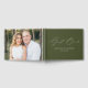 Modern Elegant Script Olive Green Photo Wedding Guest Book