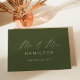 Elegant wedding guestbook featuring "Mr. and Mrs." displayed in a modern white calligraphy script on an olive green background. Personalise the front of the simple wedding guest book with your last name and wedding date. The back of the olive green guest book displays your horizontal engagement photo. Add your married name and wedding date to the spine of the photo guest book.