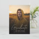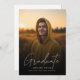 Celebrate your graduation with this modern and elegant script overlay photo announcement. Featuring a handwritten calligraphy script and a white text overlay, this announcement is perfect for college or high school graduates who want a unique and formal way to share their achievement with friends and family. Just add your favourite photo and customise the details for a personalised touch.