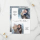 This modern save the date card features 3 photos accented with elegant script text. Two photo appear on the front and a third fills the back with text overlay for additional information. Personalise with the names of the couple and their upcoming wedding date and location.