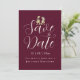 Make your wedding truly unforgettable with this playful dinosaur-themed “Save the Date” card featuring a charming T-Rex bride and groom in soft watercolor style. Designed for fun-loving couples, this unique card blends whimsical romance with modern elegance, pairing the adorable dinosaur illustration with ivory cream stylish elegant script and modern typography on a rich romantic burgundy background for a memorable first impression.