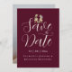 modern elegant photo wedding save the date with Whimsical Dinosaur theme wedding “Save the Date” burgundy and ivory cream Card Funny T-Rex dinosaur Bride & Groom Wedding Announcement