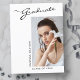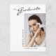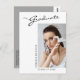 This modern elegant graduation announcement postcard, features design elements of modern text fused with elegant calligraphy script. The graduates horizontal photo is artfully placed on the front of the card while the back of the card offers personalized text spaces for information about the graduation and future journey. Backgrounds are white on the front and silver gray on the back or easily customize them to colors of your choice. To see more items like this, visit my store here at "www.Zazzle.com/LakeViewCardCo". Thanks
