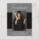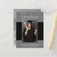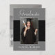 Beautiful 2 photo, graduation announcement postcards. Featuring modern text with elegant script. The graduates photo is thinly edged in a silver grey border and decorative wavy trim. The design is complimented with a background in shades of platinum grey and regal black. The back of the card offers a personalised announcement text space for that special graduate and a second grad photo under a soft misty layer creating a chic backdrop. The perfect card to share this special occasion.