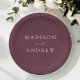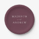 The elegant, personalised purple wedding paper plates are perfect for your wedding reception, rehearsal dinner, engagement party, and more! The minimalist purple wedding plates are perfect for summer, fall, winter, and spring weddings. The design features a chic modern calligraphy script with your names in white lettering on a purple background. The design coordinates with our Modern Elegance Purple wedding collection.