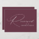 Modern reserved sign featuring "Reserved" displayed in an elegant white calligraphy script with a wine-purple background or custom colour. Personalise the script reserved sign with your custom text (currently shown with "Groom's Family"). The design repeats on the back of the sign. Use the purple wedding sign to reserve chairs or tables at your wedding ceremony, reception, rehearsal dinner, or other special events.