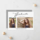 This modern elegant 2 photo graduation announcement card, features design elements of modern text fused with elegant calligraphy script. The grad photos are displayed on the front of the card while the back of the card offers personalised text spaces for information about the graduation and future journey. Backgrounds are white on the front and silver grey on the back or easily customise them to colours of your choice. To see more items like this, visit my store here at "www.Zazzle.com/LakeViewCardCo". Thanks