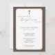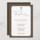 Modern Elegant Script Taupe Baptism Invitation. Personalise with details of your event. Name of baby being baptised, location of church, reception location and RSVP information.