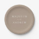 Modern Elegant Script Taupe Wedding Paper Plate
