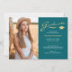 This double sided 2 photo stylish graduation announcement or thank you card, features modern text fused with elegant calligraphy script in gold colour and white on teal. Photos are one on the front and one on the back, perfect for framing. The background can be easily customised to a colour of your choice. To see more items like this, visit my store here at "www.Zazzle.com/LakeViewCardCo". Thanks