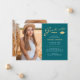 Modern Elegant Script Teal & Gold | 2 Photo Grad Announcement