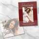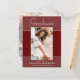 Beautiful 2 photo, graduation announcement postcards. Featuring modern text with elegant script. The graduates photo is thinly edged in a white border and decorative wavy trim. The design is complimented with a background in shades of red and terracotta. The back of the card offers a personalised announcement text space for that special graduate and a second grad photo under a soft misty layer creating a chic backdrop. The perfect card to share this special occasion.