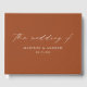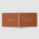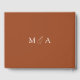 Elegant wedding guestbook featuring "the wedding of" displayed in a modern white calligraphy script on a terracotta background. Personalize the front of the simple wedding guest book with your names and wedding date. The back of the terracotta guest book displays your monogram initials. Add your married name and wedding date to the spine of the guest book.