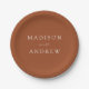 Modern Elegant Script Terracotta Wedding Paper Plate