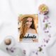 Real foil, unique custom photo graduation announcement cards. This design features elements of elegant brush script in real foil reading "Graduate" along with your info in modern text. The graduates photo highlights the front of the card while the back of the card offers personalised text spaces for information about the graduation and future journey. You can easily customise the primary and text colours on the back of the card to suit your needs. To see more items like this, visit my store here at "www.Zazzle.com/LakeViewCardCo". Thanks