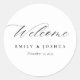 Modern Elegant Script Wedding Welcome Classic Round Sticker
