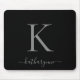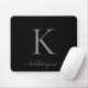 Modern Elegant Silver Monogram Script Black Mouse Pad