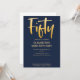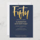 Introduce new modern, elegant 50TH birthday party invitation, navy blue background with gold colour handwritten typography text "fifty". Customise this template card by adding your own party information.
