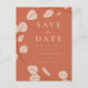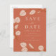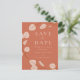 Elegant Minimalist eucalyptus leaves sprig simple line art drawing burnt orange, pink peach and terracotta orange wedding save the date. Personalised modern typography script with easy to use templates. A simple chic beautiful simplistic stylish greenery design wedding save the date invitation available printed and as a digital downloadable. Unique botanical foliage in burnt orange, terracotta and pinky peach hues, unique artwork by artist Catherine Sweetman ideal for a spring, summer, autumn fall or winter wedding.