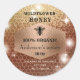 Modern elegant sparkle rose gold bee logo classic round sticker