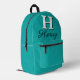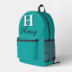 Modern Elegant Spring Teal Monogram Printed Backpack