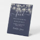 Modern Elegant String Lights Navy Blue Food Menu Pedestal Sign