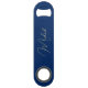 Create your own custom, personalised, modern elegant faux gold calligraphy typography script font monogrammed on navy blue background, trendy chic stylish cool professional extra durable stainless steel speed bottle opener bar key featuring a length and design to open bottles with speed and ease. Simply type in your name / family name, to customise. Makes a great gift for birthday, christmas, holidays, wedding, graduation, fathers day, friendship day, special tastings, milestone birthdays, and more, for your loved ones, mum, dad, girlfriend, boyfriend, husband, wife, couples, newlyweds, beer lovers, bartenders, men, women, him, her, friends and family.