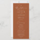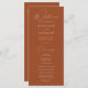 Elegant wedding program featuring a modern white calligraphy script with a terracotta background to create a design that is perfect for weddings of all styles and seasons. Personalise the front of the modern wedding program with your names, wedding date and location, and order of the ceremony. The simple terracotta wedding program reverses to display a list of your wedding party. The design was created to coordinate with our Modern Elegance wedding collection.