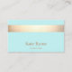 Elegant business card design featuring horizontal gold FAUX foil stripe image on light blue aqua background. There is no shine or texture. For additional matching marketing materials, custom design or